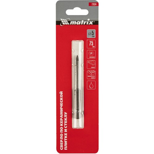 Сверло Matrix 72834 по керамике Д=5мм Дл=75мм (1пред.) для дрелей