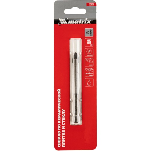 Сверло Matrix 72837 по керамике Д=8мм Дл=85мм (1пред.) для шуруповертов/дрелей