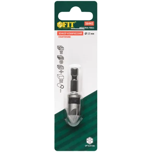 Зенкер FIT 36445 по дер/мет/пласт Д=13мм для шуруповертов/дрелей