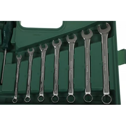 | Комплектация | жесткий кейс, набор гаечных ключей, набор головок, набор отверток |