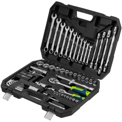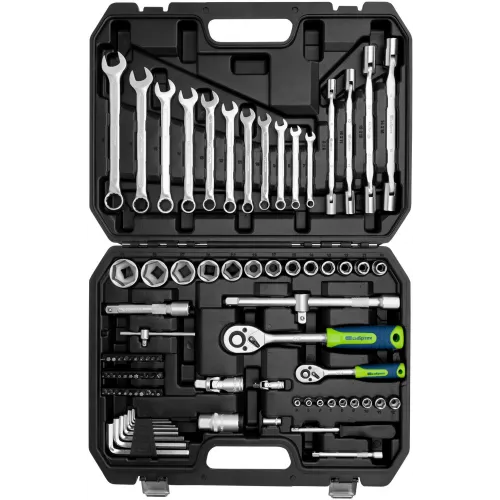 | Описание | Набор инструментов Сибртех 13396 упакован в пластиковый кейс и состоит из 89 предметов с присоединительным размером 1/2" и 1/4", предназначенных для монтажа и демонтажа резьбового крепежа с разными типами шлицев. В комплект поставки входят карданы, удлинители и шарнирные ключи. |