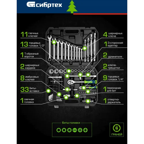 Набор инструментов Сибртех 13396 89 предметов (жесткий кейс)