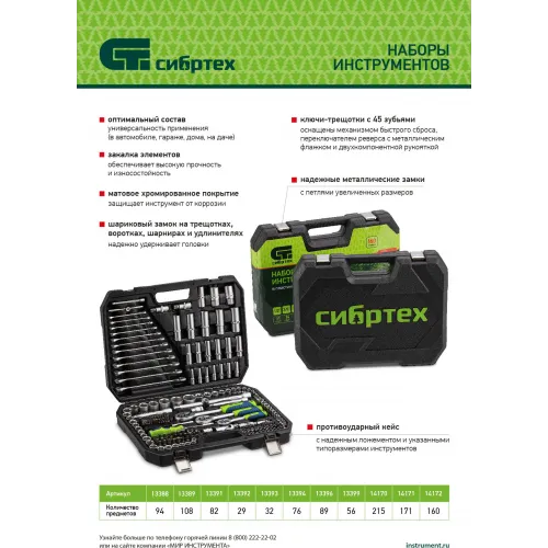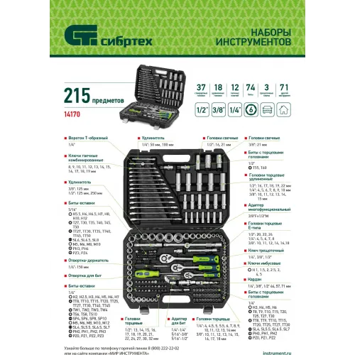 Набор инструментов Сибртех 14170 215 предметов (жесткий кейс)