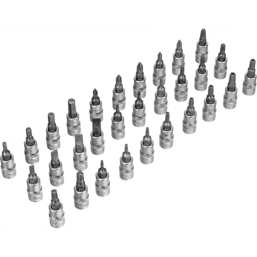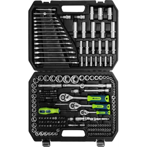 | Описание | Предназначенных для монтажа и демонтажа резьбового крепежа с разными типами шлицев. В комплект поставки входят карданы, удлинители и переходники, облегчающие работу в труднодоступных местах. Набор используется для ремонта автомобилей, а также будет полезен в быту. |