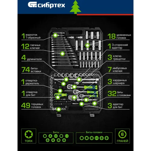 | Комплектация головок | Torx (Е-профиль), шестигранные |