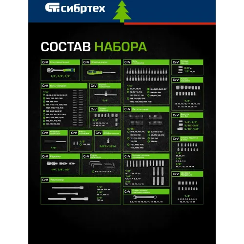 | Головки 1/4"DR, список | 4, 5, 6, 7, 8, 9, 10 мм. |