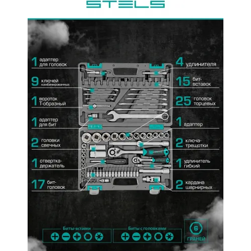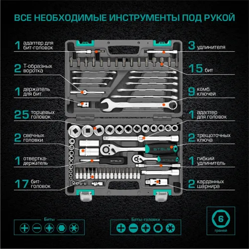 Набор инструментов Stels 14105 82 предмета (жесткий кейс)
