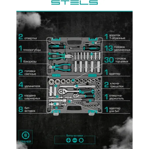 Набор инструментов Stels 14108 69 предметов (жесткий кейс)