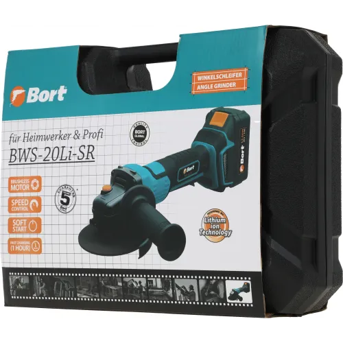 Углошлифовальная машина Bort BWS-20Li-SR 7000об/мин рез.шпин.:M14 d=125мм жестк.кейс (93412215)