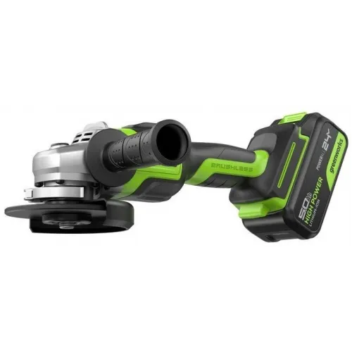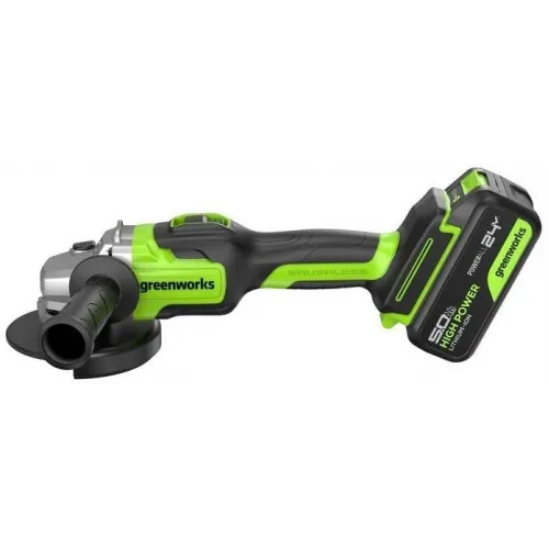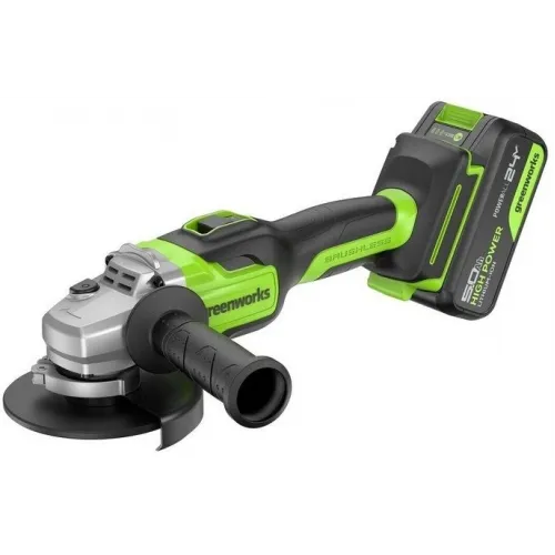 | Комплект поставки | Угловая шлифовальная машина Greenworks GD24AG, АКБ 5Ач, быстрое зарядное устройство Greenworks G24C4, 24V, 4А; защитный кожух, боковая рукоятка, опорный фланец, зажимная гайка, ключ, руководство по эксплуатации, гарантийный талон. |