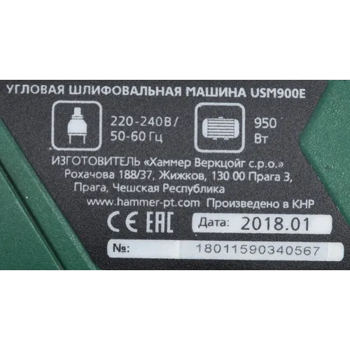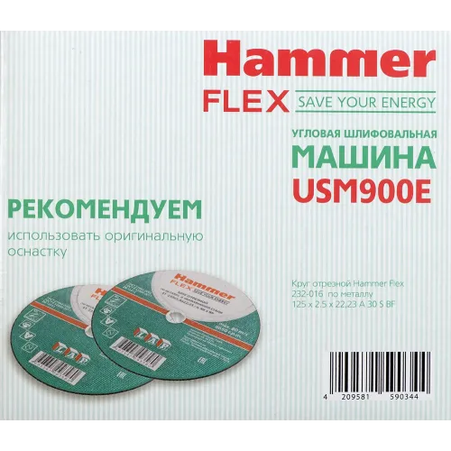 Углошлифовальная машина Hammer Flex USM900E 900Вт 12000об/мин рез.шпин.:M14 d=125мм (USM900E)