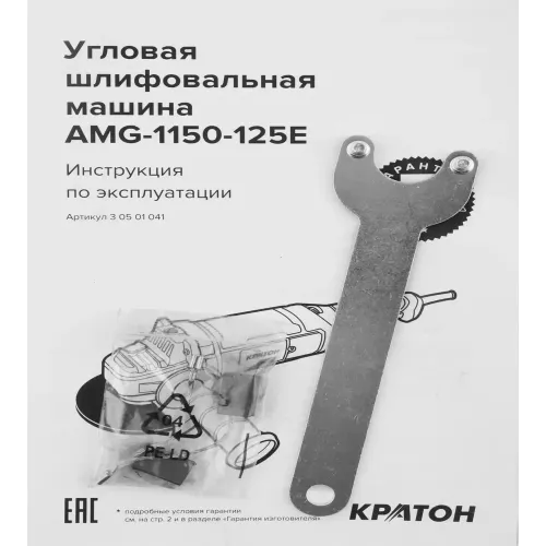 Углошлифовальная машина Кратон AMG-1150-125E 1100Вт 11000об/мин рез.шпин.:M14 d=125мм (3 05 01 041)