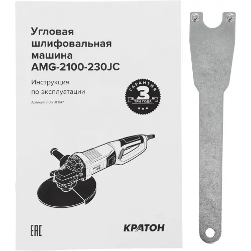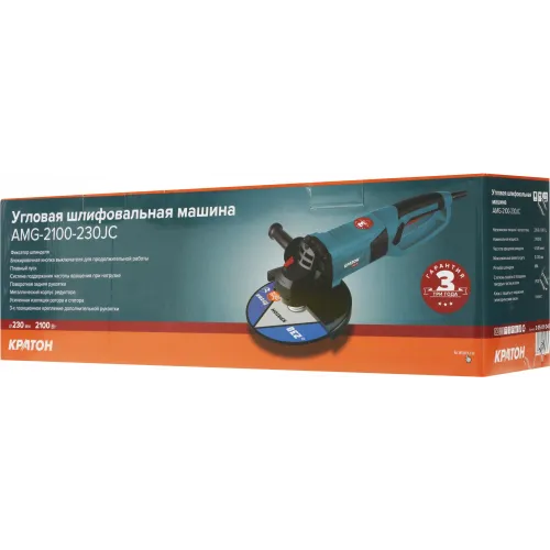 Углошлифовальная машина Кратон AMG-2100-230JC 2100Вт 6000об/мин рез.шпин.:M14 d=230мм (3 05 01 047)