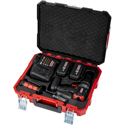 Комплект поставки | Аккумуляторная дрель, аккумулятор 4 Ач - 2 шт., зарядное устройство, дополнительная ручка, скоба для подвеса, кейс ESS, паспорт. |