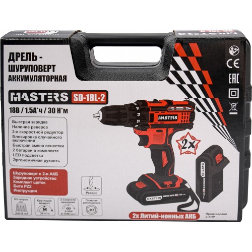Дрель-шуруповерт Masters SD-18L-2 аккум. патрон:быстрозажимной (кейс в комплекте) (18810)