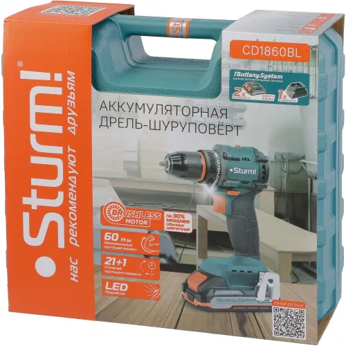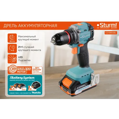Дрель-шуруповерт Sturm! CD1860BL аккум. патрон:быстрозажимной (кейс в комплекте)