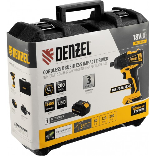 Гайковерт Denzel CID-IB-200 аккум. патрон:квад.1/4" (кейс в комплекте) (26510)