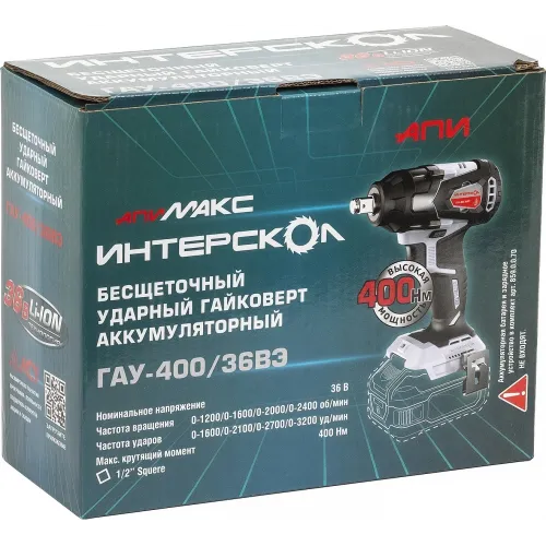Гайковерт Интерскол ГАУ-400/36ВЭ аккум. патрон:квад.1/2" (859.0.0.70)