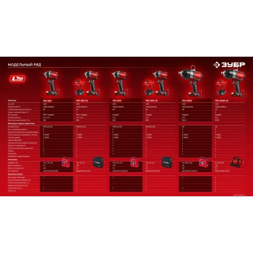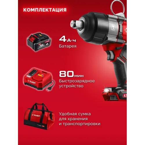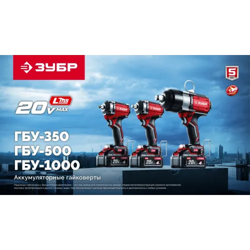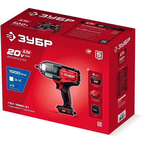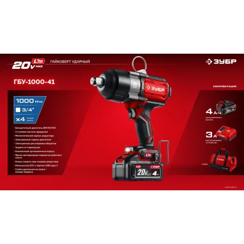 Гайковерт Зубр ГБУ-1000-41 40Вт аккум. патрон:квад.3/4"