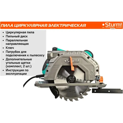 | Комплектация | Пильный диск, параллельная направляющая, гаечный ключ, патрубок для подключения к пылесосу, дополнительные угольные щетки (комплект, 2 шт.), инструкция по эксплуатации. |