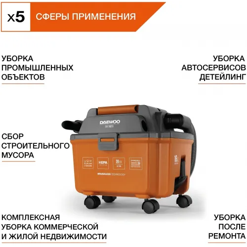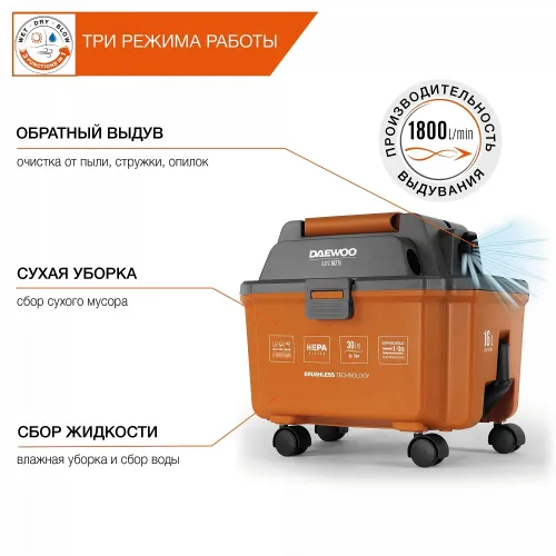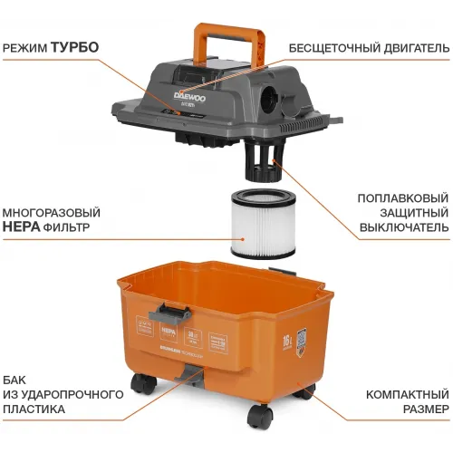 Строительный пылесос Daewoo DAVC 1621Li SET 200Вт (уборка: сухая/сбор воды/выдув) оранжевый