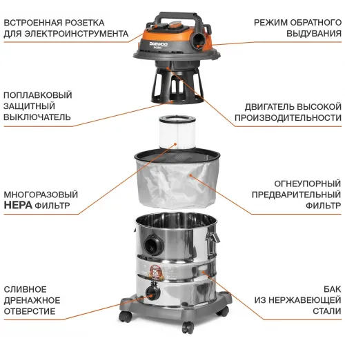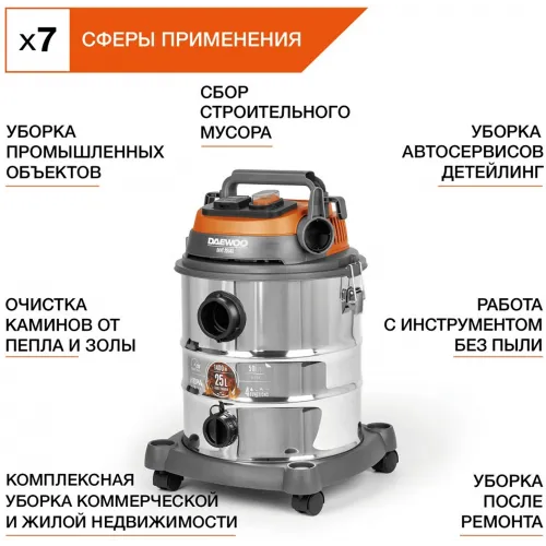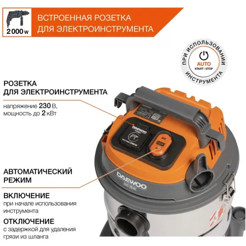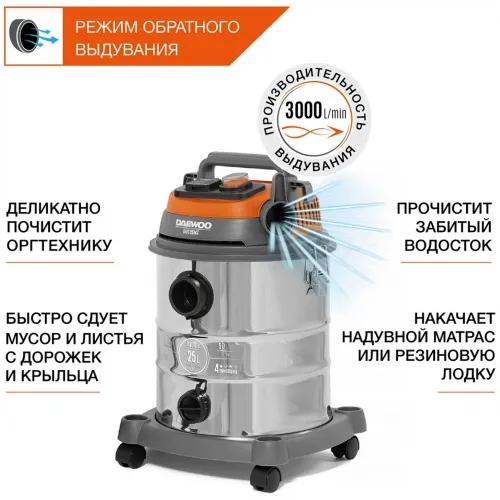Строительный пылесос Daewoo DAVC 6025S 2500Вт (уборка: сухая/сбор воды/выдув) оранжевый