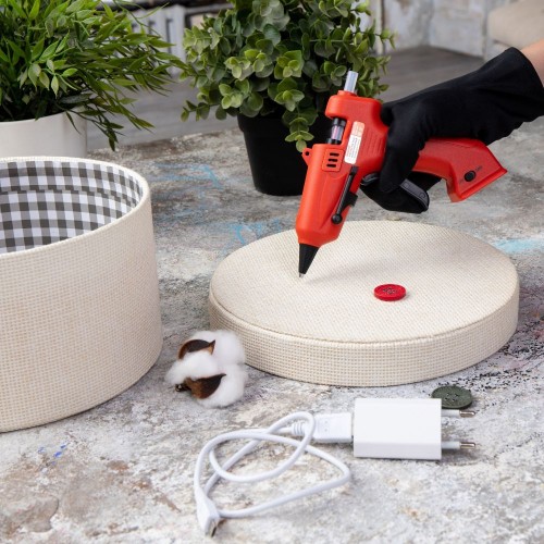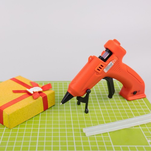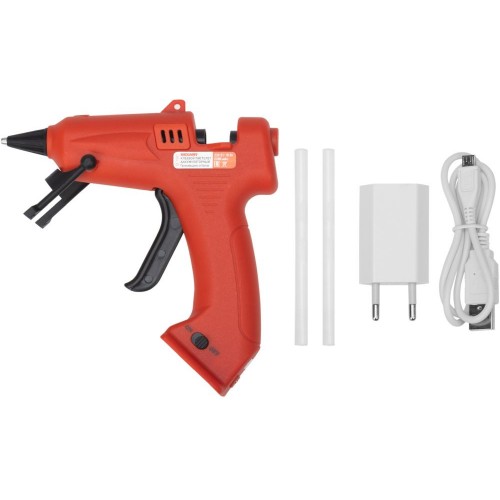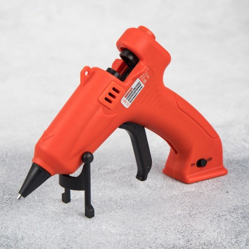 | Особенности | Профессиональный клеевой пистолет с мощным аккумулятором 2200 мАч. При полной зарядке обеспечивает 100 мин беспрерывной работы (зарядное устройство в комплекте). Прибор позволяет не зависеть от розетки. Оснащен долговечным керамическим нагревателем, плавильной камерой с защитой от утечки клея. |