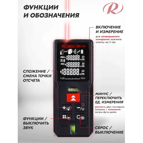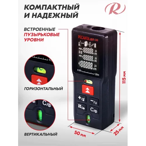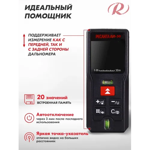 Лазерный дальномер Ресанта ДЛ-30 2кл.лаз. 635нм (61/10/519)