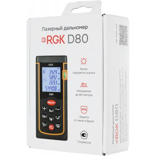 Лазерный дальномер RGK D80 2кл.лаз. 635нм цв.луч. красный (4610011871832)