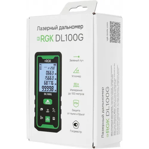 Лазерный дальномер RGK DL100G 2кл.лаз. 535нм цв.луч. зеленый (778190)