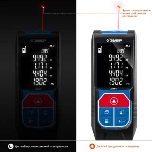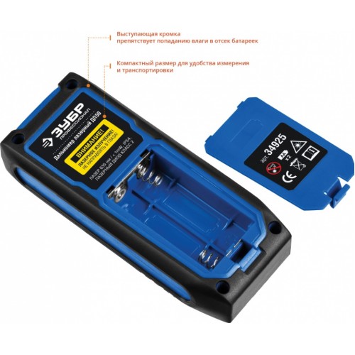 Лазерный дальномер Зубр 34925 2кл.лаз. 635нм цв.луч. красный в кейсе