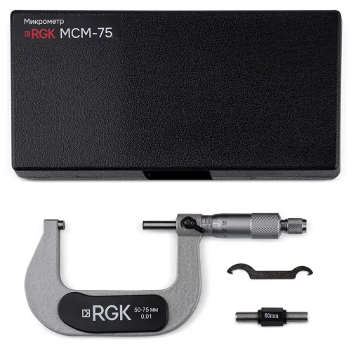 | Комплект поставки | Микрометр RGK MCM-75, футляр, ключ. |