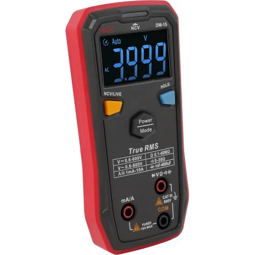 Описание | Мультиметр RGK DM-15 - современный прибор для замеров электрических параметров. Яркий дисплей и инновационное кнопочное управление выделяют эту модель на фоне большинства аналогов и делают работу более удобной. |