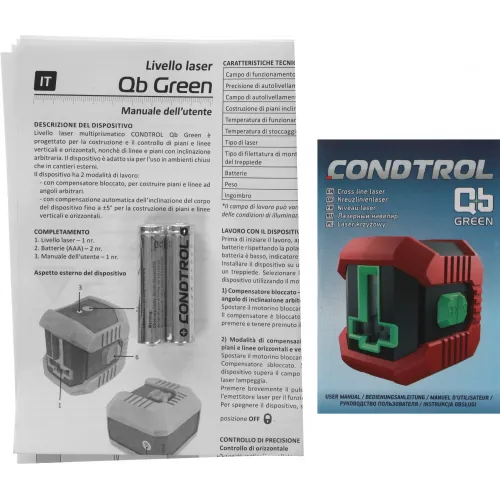 | Описание | Лазерный нивелир CONDTROL QB Green – это усовершенствованная модель популярного QB Promo с зеленым лазером, функцией самовыравнивания и рабочим диапазоном 20 м. Имеет оригинальную форму и отличается простотой управления. Для запуска и разблокировки достаточно воспользоваться кнопкой-переключателем. |