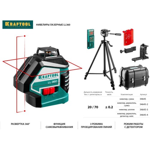 Нивелир лазерн. Kraftool 34645 цв.луч. красный 2луч.