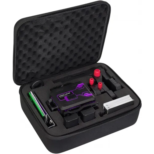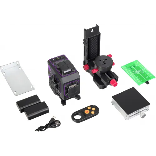 | Аксессуары в комплекте | Пульт дистанционного управления, пластина лазерной мишени, подъемная платформа (микролифт), магнитный L-образный кронштейн, металлическая пластина, кабель USB Type-C, аккумулятор Li-ion 2600 мАч - 2 шт., мягкий кейс на молнии, инструкция по эксплуатации и гарантийный талон |