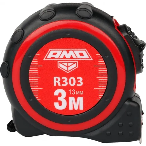 Рулетка строительная Amo R303 дл.полотна 3м изм.шкала в см зацеп простой красный/черный (851506)