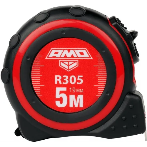 Рулетка строительная Amo R305 дл.полотна 5м изм.шкала в см зацеп простой красный/черный (851513)