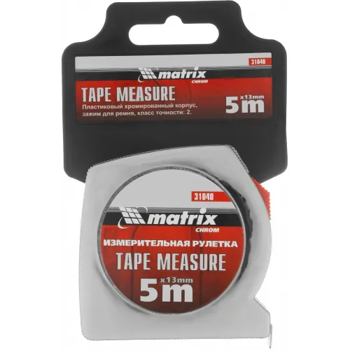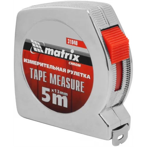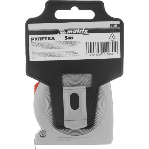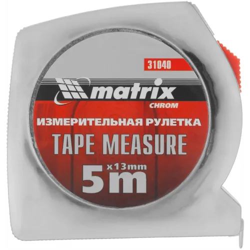Рулетка строительная Matrix Chrom дл.полотна 5м изм.шкала в см зацеп простой серый (31040)