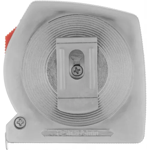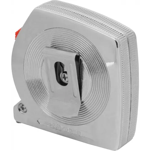 | Описание | Имеет класс точности 2 и цену деления 1 мм., корпус выполнен из ударопрочного ABS-пластика и хромирован. Преимущества: зацеп надежно закреплен заклепками на конце ленты, кнопка-фиксатор удерживает ленту на нужной длине, на корпусе имеется металлическая клипса. 5 м. x 13 мм., хромированный корпус. |