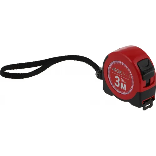 Рулетка строительная RGK R3 дл.полотна 3м изм.шкала в см зацеп простой красный/черный (774895)