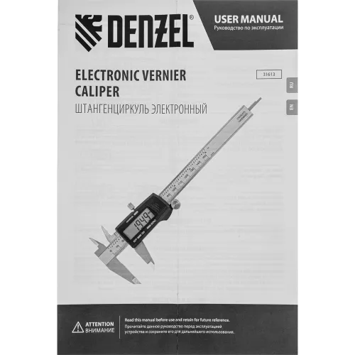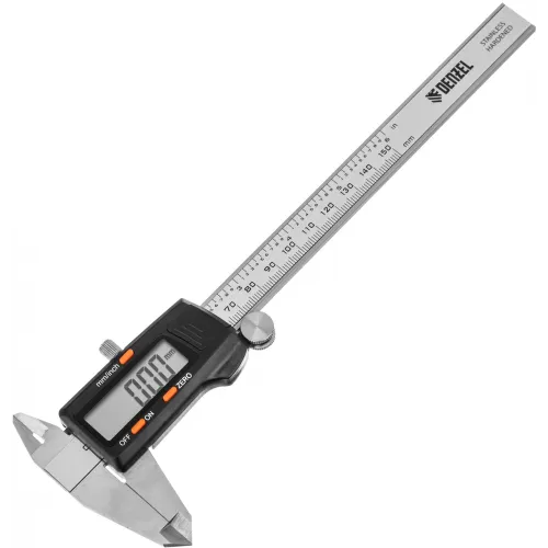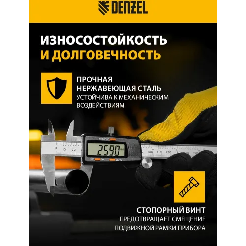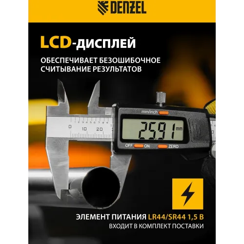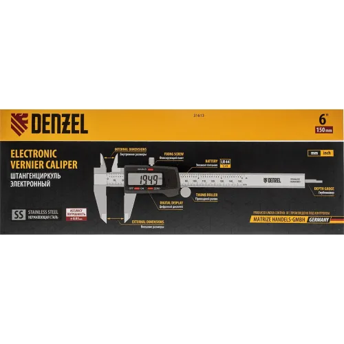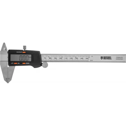 Штангенциркуль электронный Denzel 31613 черный/серый пластиковый футляр