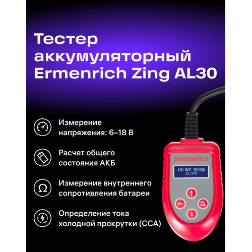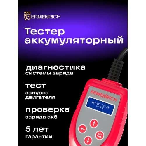 | Особенности | Три тестовых схемы: базовый тест аккумулятора, тест запуска двигателя, тест системы заряда |