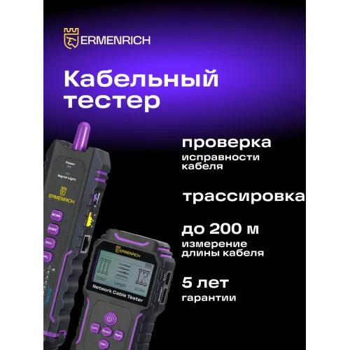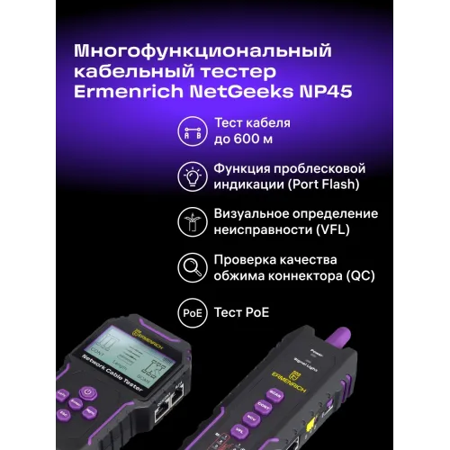 Тестер кабельный Ermenrich NetGeeks NP45 фиолетовый/черный (84554)