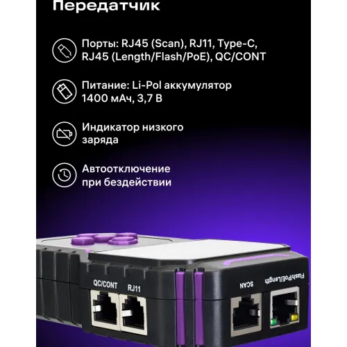 | Разъемы передатчика | QC, RJ11, RJ45 (scan), USB Type-C |