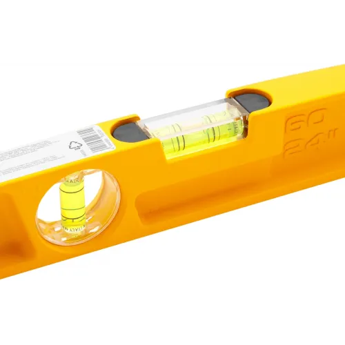 | Описание | Корпус уровня изготовлен методом литья. Ударные площадки на обоих концах. Модель имеет два глазка для проверки отклонений по горизонтали и вертикали. Точность измерений 0.5 мм/м. |