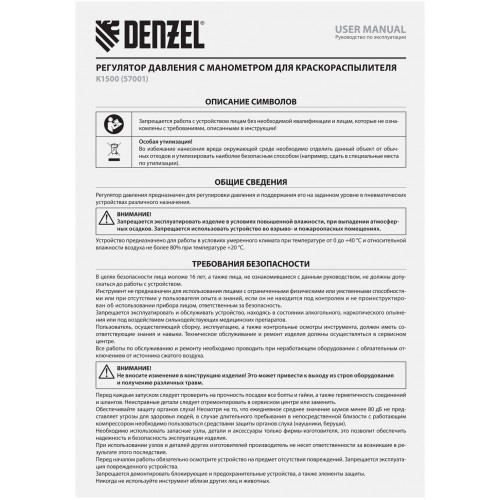 | Комплектация | Регулятор давления, манометр, руководство по эксплуатации и гарантийный талон. |