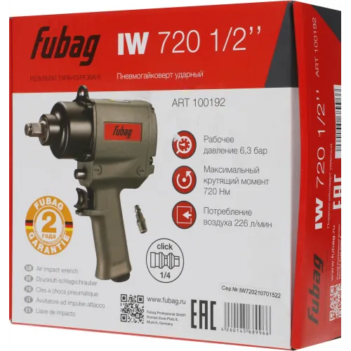 Гайковерт Fubag IW720 226л/мин серый/черный