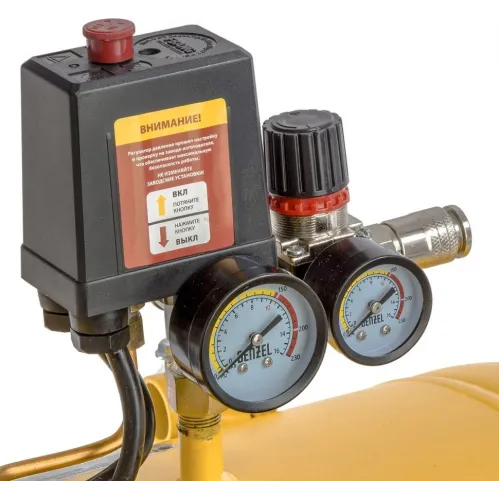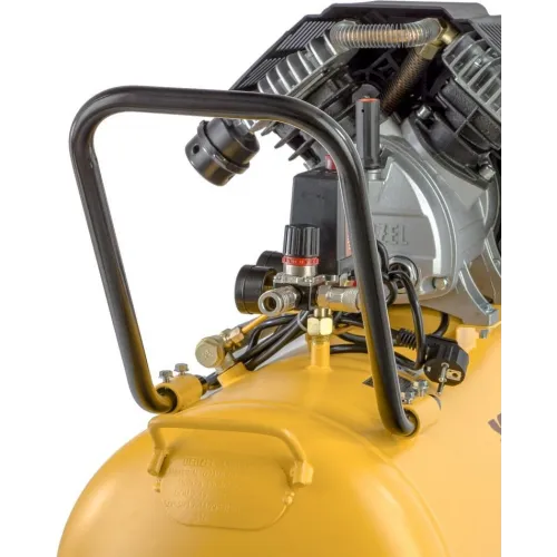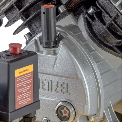 Особенности | Двухцилиндровая компоновка, колеса для перемещения, ресивер 100 литров, индикатор уровня масла в картере. Прямой привод, цилиндры из чугуна, 2 манометра для контроля давления в ресивере и пневмомагистрали, 2 быстросъемных пневмоконнектора Рапид (евро), защита мотора от перегрузки. |