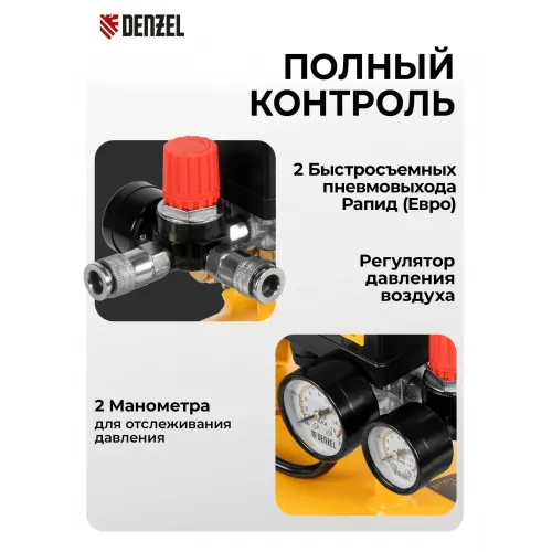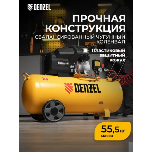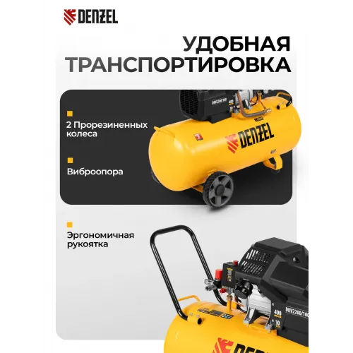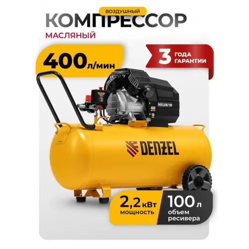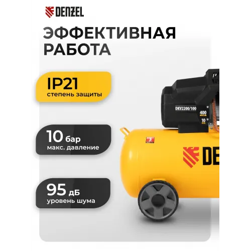Компрессор поршневой Denzel DKV2200/100,Х-PRO масляный 400л/мин 100л 2200Вт желтый/черный